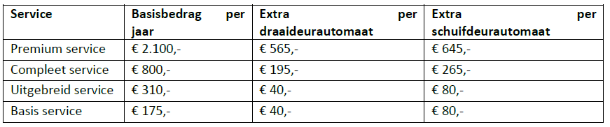- Bij 6 tot 10 deurautomaten krijgt u een korting van 5% op de jaarprijs.